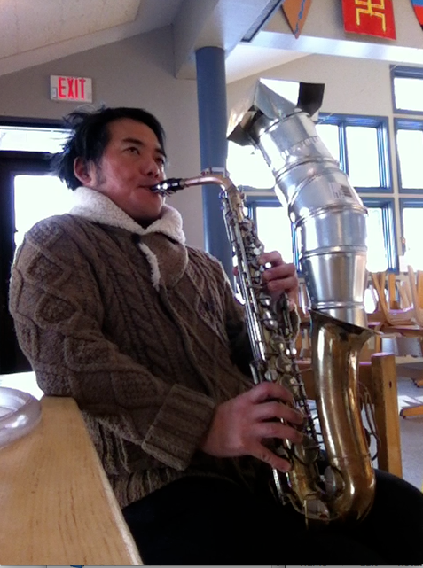 The resident musicians of Yellow Barn's Utopia/Euterpe/Dystopia residency arrived in Putney, Vermont on Sunday night. Their first stop on Monday morning was to Brown & Roberts hardware in Brattleboro, disassembled saxophone in hand. Upon returning to Yellow Barn's campus at the Greenwood School, the artists created the first prototypes of the modified saxophone and harp that will be incorporated into a new work jointly composed by Ken Ueno and David Smooke for the harp-saxophone duo Pictures on Silence (harpist Jacqueline Pollauf, and saxophonist Noah Getz). The musicians will present their work in a free demonstration on Friday, Jnauary 11th at 7pm in the Greenwood School library.