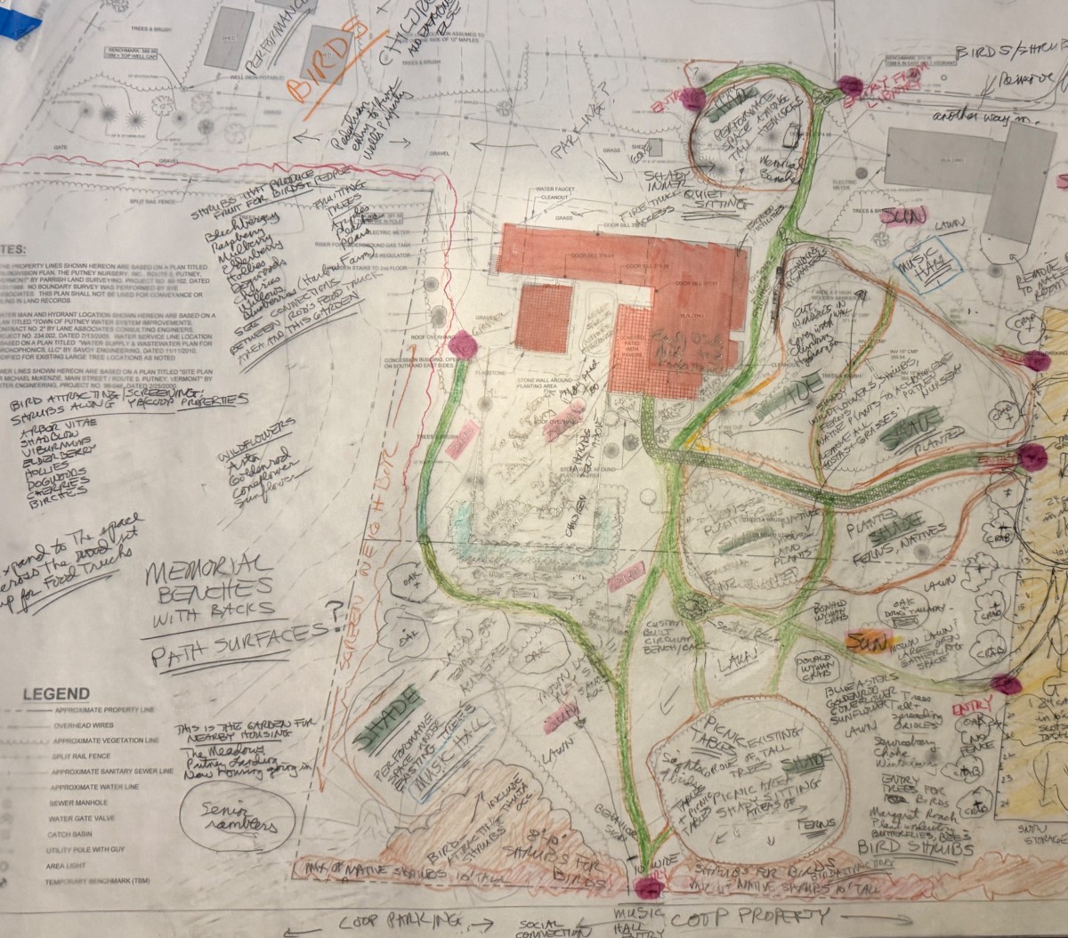 It has been nearly a year since the first open meeting for the Putney community about our plans for a garden surrounding the Big Barn. Present that evening was garden designer and longtime Putney resident Gordon Hayward. Gordon, who has been a friend of Yellow Barn since its earliest years, generously embraced the process of bringing together our evolving ideas for Yellow Barn "inside out", the initial plan that we created together with landscape architect Chris Donohue at Michael Van Valkenburgh Associates, and the ideas and needs expressed by the Putney community at our meetings and in the Town Plan.