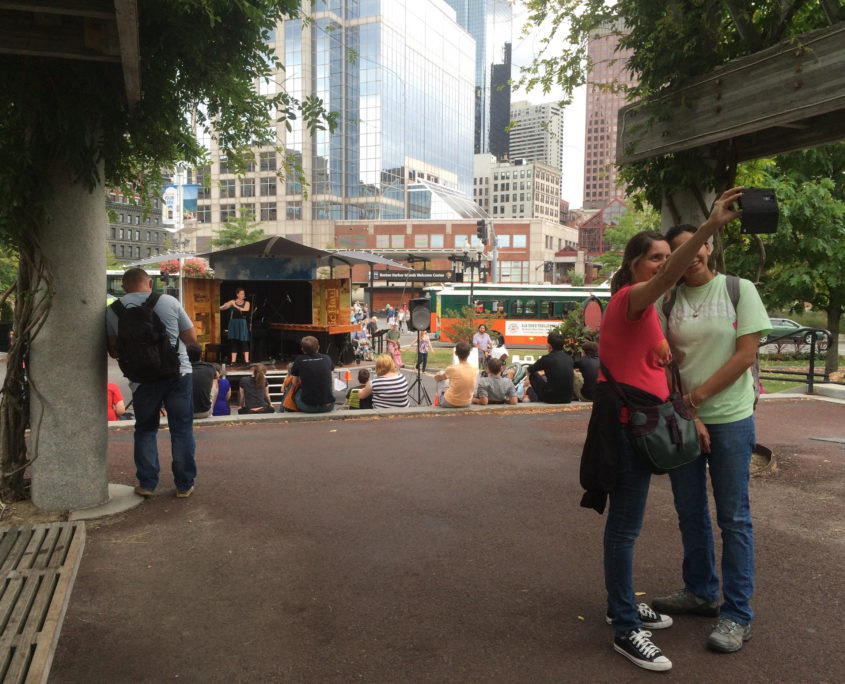 KNOPP: In terms of the pitfalls, the practicality, we feel that we [directors] need to stay at a distance from Music Haul. Especially when it’s not live musicians, we’re just playing off the speakers, there’s this thought that people on the street are used to being stopped, people trying to sell them something… If we distance ourselves from the truck, so people have no idea that it belongs to us, they are much more likely to stop and listen and have their own experience.The same thing is true with live musicians. We feel like this truck, in a way, takes the presenter out of the middle, and allows the musicians who are playing to have direct relationships with the audience. And it’s also because the audience can leave at any point – it’s completely up to them. They can be self-selecting, which means it’s truly their experience. They decide to stay because of what they hear, not because of what they expect to hear. And people who wouldn’t ordinarily stop for this because they might be fearful of going someplace they’ve never gone before, or not understanding the protocol, or even know when it begins or ends – that whole fear is taken away.
