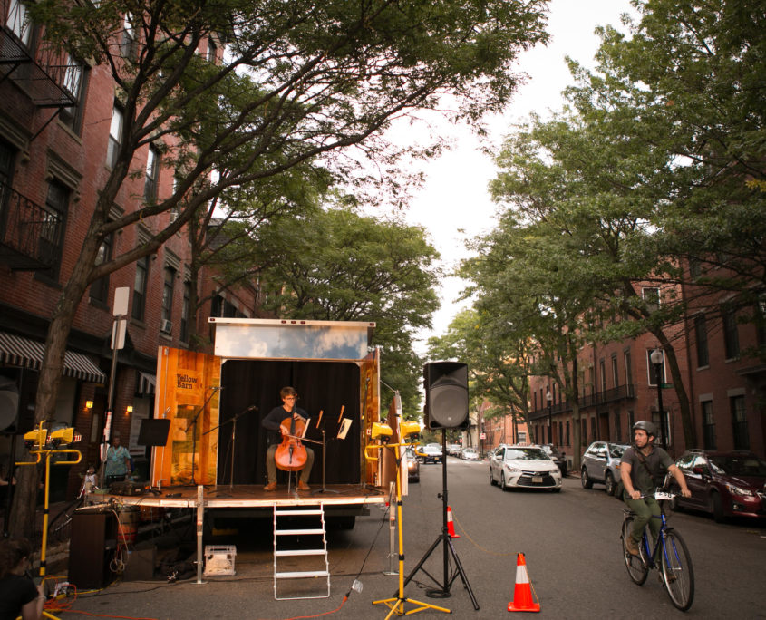 Yellow Barn, the famously intrepid summer chamber music festival based in Putney, Vermont, is raising the concept of “taking the show on the road” to a new level. In October 2015 the center introduced Music Haul, a mobile stage in the back of a truck, which allows Yellow Barn’s musicians to perform virtually anywhere the vehicle can travel.