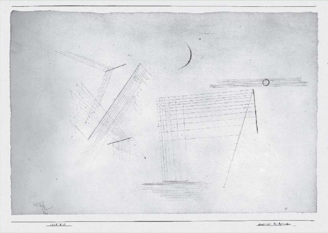 Birtwistle’s desire to view “the same event from different angles” reflects the ideas of Paul Klee—the Swiss-born artist whose style evades categorization through its association with movements ranging from German Expressionism to Dada. Known as unworldly and mysterious, Klee was a painter who aimed to expand the boundaries of the rational in his art, a reaction to the increasingly technologized world in which he found himself. A proponent of the idea of the “construction of mystery,” he was fascinated by the unknowns of outer space; his paintings often focusing on geometric forms that float as if free of gravity. Klee frequently made the moon a subject of his works, such as in his Crescent Moon over the Rational, the title of which gave birth to Birtwistle’s composition.
